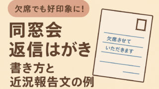 イベント 同窓会の断り方に悩んだら。失礼なく近況を伝えるスマートな方法 「同窓会に行けなくなった…でも、何か一言添えたい。」そんな時に悩むのが“近況報告”の書き方。仕事や家庭の事情、気持ちの問題など、欠席する理由は人それぞれ。でも、ちょっとした気配りで、相手との関係をよりよい形で保つことができます。 この記事で... 2025.09.07 イベント