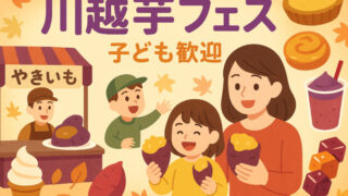 イベント 焼き芋だけじゃない!川越芋フェスは子どもが主役の秋イベントだった! 秋の味覚といえばさつまいも! その美味しさをとことん楽しめる「川越芋フェス」は、子ども連れのファミリーにぴったりのイベントです。焼き芋やスイートポテトをはじめとする芋グルメだけでなく、ワークショップやお芋掘り体験、さらには川越観光も楽しめる... 2025.09.09 イベント