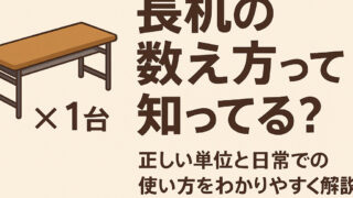 ライフ 長机の正しい数え方とは?意外と知らない日本語の使い分け解説! 「机って、何台?何脚?」日常会話や仕事の場面で意外と悩むのが、モノの「数え方」。特に「長机」はイベントや会議など、さまざまな場面で使われるのに、正しい数え方を知らない人も多いのでは? この記事では、「長机の数え方」を中心に、似たような家具の... 2025.09.20 ライフ