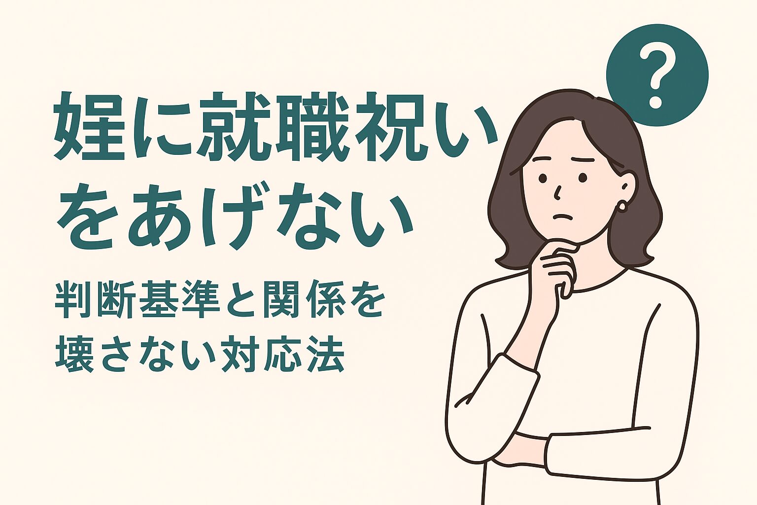 親戚付き合いの中で、就職祝いはとても微妙な問題。あげないと失礼?でも、無理して渡すのも何か違う…。そんな悩みに寄り添いながら、この記事ではあげない選択肢とその後の上手なフォロー方法についてわかりやすく解説していきます。