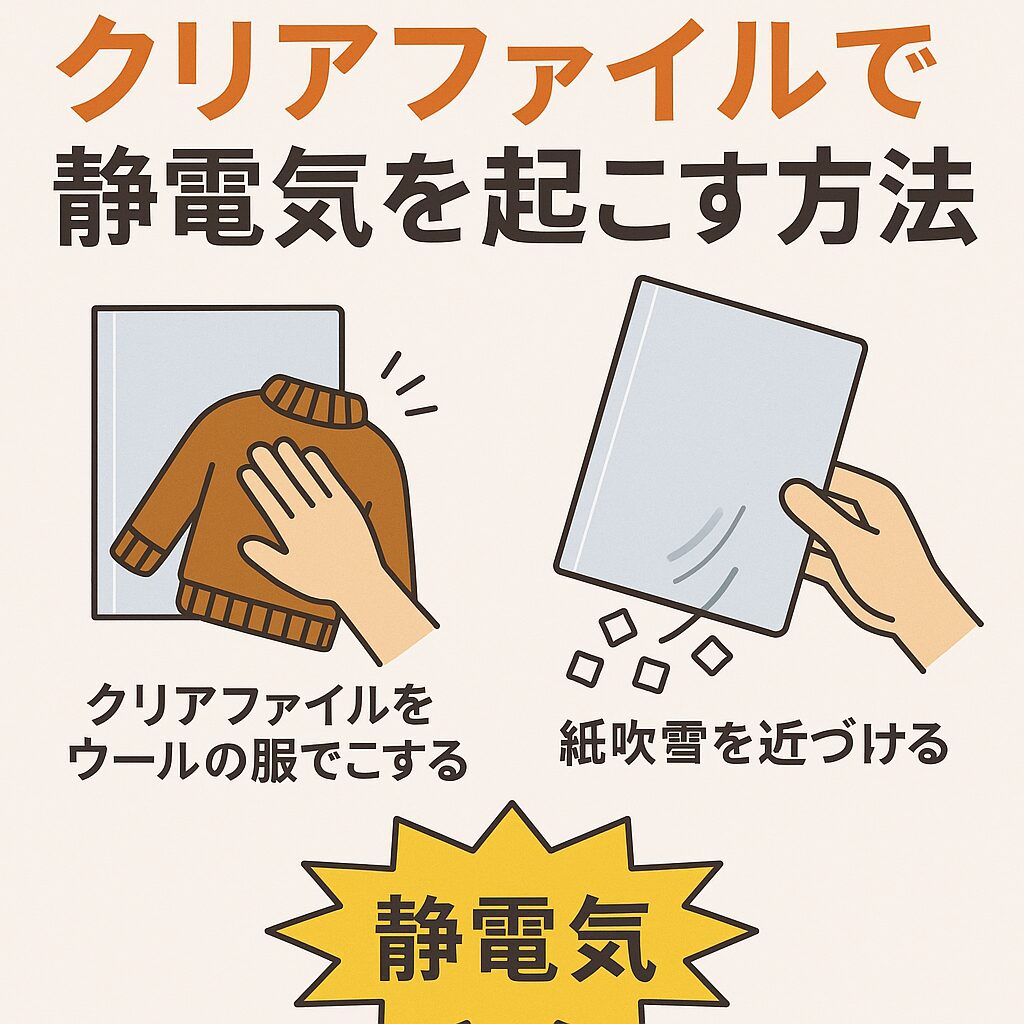 冬になるとよく聞く「パチッ!」という音。その正体は、私たちの身近にある“静電気”です。実はこの静電気、特別な道具がなくても、身の回りにある「クリアファイル」だけで簡単に起こすことができるんです!